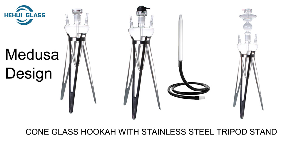 Hehui Glass, a professional hookah, glass bong and hookah manufacturer with 20 years experience, offers tapered glass hookah with stainless steel tripod, which embodies the quality of transparency, durability and elegance. Made from lab-grade glass, this hookah ensures that the flavor of the tobacco or herb you're using won't be tainted by any previous residue or aftertaste. Hookahs vary in height from 780mm to 930mm, depending on your preference and the size of the room or occasion. The stainless steel tripod adds stability, style and mobility to the hookah, making it easy to set up, clean and transport.